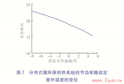 供熱系統(tǒng)位于石家莊時(shí),在設(shè)定條件下,采用分布式循環(huán)泵供熱系統(tǒng)的節(jié)能率為19.3%。