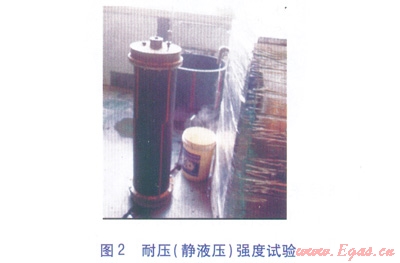 依據(jù)《規(guī)程》5.1.9條規(guī)定,每次試驗需選擇2個現(xiàn)場檢查出來有疑問的接頭,一個接頭做耐壓(靜液壓)強度試驗(見圖2),另一個接頭選取翻邊不合格段所對應的管段作取樣件(圖3中的黑色部分),做拉伸性能試驗(見圖3)。試驗的方法及參數(shù)遵照表1的相關規(guī)定。其中耐壓(靜液壓)強度試驗時,因管道材質為PE100,所以環(huán)應力s取5.4MPa。管內試驗壓力按下式計算: