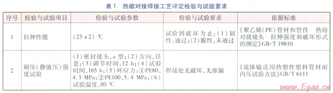 ③《規(guī)程》5.1.9條規(guī)定,當對熱熔對接連接接頭的焊接質量檢查有爭議時,應按表1規(guī)定進行評定檢驗。