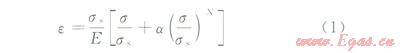采用Ramberg-Osgood模型來(lái)描述管材的彈塑性特征,表達(dá)式如下: