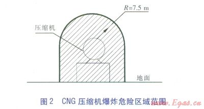 天然氣具有易燃、易爆的特性,事故表現(xiàn)形式主要有火災(zāi)、爆炸、爆燃等。很多事故都由天然氣的泄漏引起,泄漏量達(dá)到爆炸極限時(shí)若遇明火,則造成火災(zāi)、爆炸事故,事故時(shí)對(duì)周圍的破壞及殺傷力很大[1]。規(guī)范GB 50156—2012嚴(yán)格規(guī)定了爆炸危險(xiǎn)區(qū)域劃分標(biāo)準(zhǔn),標(biāo)準(zhǔn)中重點(diǎn)針對(duì)CNG加氣設(shè)備、儲(chǔ)存設(shè)備、加壓設(shè)備等進(jìn)行了爆炸危險(xiǎn)區(qū)域劃分。按照該規(guī)范對(duì)爆炸危險(xiǎn)區(qū)域的劃分對(duì)防爆電氣設(shè)備進(jìn)行選型,可以避免由電氣設(shè)備引起的火災(zāi)事故,有效保證CNG加氣站的安全。