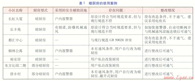 暗廚房作為一個產(chǎn)品,在現(xiàn)行的建筑標準體系中沒有提及,且其指標低于相關(guān)規(guī)范中對廚房的要求,屬于不合格產(chǎn)品,同時考慮到暗廚房對于用氣的不安全性,因此對于新建的暗廚房應(yīng)不考慮對其供應(yīng)燃氣。但是由于歷史原因,對于現(xiàn)有的已經(jīng)供氣暗廚房,燃氣供應(yīng)企業(yè)應(yīng)加強對其安全措施的管理和維護,以確保用氣安全。