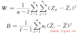 確定段內(nèi)方差W及段間方差B,其中n為有序樣品個(gè)數(shù),l為分段長(zhǎng)度。