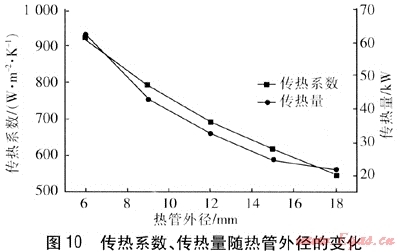 從以上分析可知,在換熱器其他結(jié)構(gòu)尺寸及其他條件不變的情況下,減小熱管外徑能夠增大換熱器的傳熱量,并能滿足較小設(shè)計尺寸的要求,但要考慮熱管的強度要求以及連續(xù)流動極限的限制。