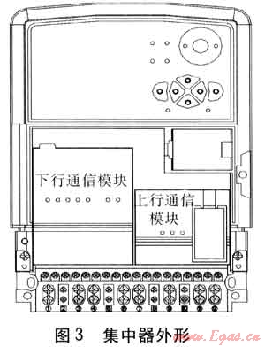 集中器外殼選用國(guó)家電網(wǎng)公司企業(yè)標(biāo)準(zhǔn)Q/GDW 375.2—2009《電力用戶(hù)用電信息采集系統(tǒng)型式規(guī)范:集中器型式規(guī)范》中的集中器外殼。外形見(jiàn)圖3??梢钥吹?,這個(gè)外殼上面有上行通信模塊和下行通信模塊兩個(gè)小盒子,這兩個(gè)小盒子采用了可插拔設(shè)計(jì)。左邊小盒子是和采集器通信的通信模塊,右邊小盒子是和主站通信的通信模塊。集中器在設(shè)計(jì)時(shí)先規(guī)定好集中器和這兩個(gè)通信模塊之間的通信協(xié)議和物理層的接口,所有通信模塊的設(shè)計(jì)都遵守這個(gè)協(xié)議。根據(jù)現(xiàn)場(chǎng)選擇通信方式的不同更換不同的通信模塊,這樣就大大提高產(chǎn)品的適應(yīng)能力。