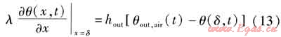 a. 墻體兩側(cè)均為第三類邊界條件墻體內(nèi)壁面邊界條件為: