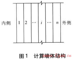 計算墻體結(jié)構(gòu)見圖1,1~n分別代表墻體的各材料層,當墻體外側(cè)存在諧波熱作用時,若各材料層的熱惰性指標均小于1.0,則有: