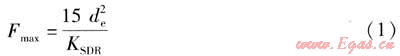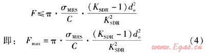規(guī)程的公式過于簡單,公式表示Fmax僅與PE管材的公稱外徑de及標(biāo)準(zhǔn)尺寸比KSDR有關(guān)。修正后的公式相對復(fù)雜,增加了σMRS和C兩個(gè)變量,這就克服了規(guī)程公式的不足之處,可以充分體現(xiàn)PE管道性能及總體設(shè)計(jì)系數(shù)的差異性。
