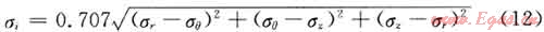 根據(jù)Von-Mises屈服強度準則,用三軸應(yīng)力來校核管柱安全性,應(yīng)力計算公式為: