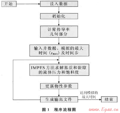 在上述模型建立的基礎上,采用自上而下的模塊化結構設計,編制了求解考慮吸附變形的煤層氣分階段流動數(shù)學模型的計算機程序(圖1)。并針對沁水盆地樊莊區(qū)塊晉試1井開采的實例進行了計算。