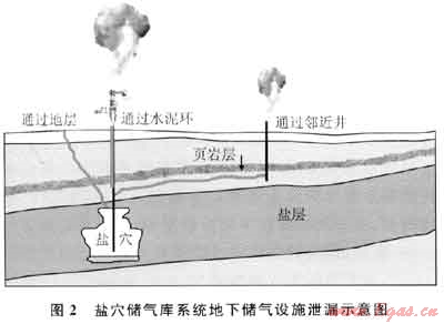 鹽穴地下儲(chǔ)氣庫(kù)是通過(guò)井筒將氣體注入鹽丘或鹽層上的廢棄鹽穴或淋漓建造的鹽穴內(nèi)進(jìn)行儲(chǔ)存,并可采出來(lái)滿(mǎn)足市場(chǎng)需求。儲(chǔ)氣庫(kù)應(yīng)具備兩種能力:①儲(chǔ)存天然氣并阻止天然氣釋放到周?chē)h(huán)境中;②以有效速率為用戶(hù)提供儲(chǔ)存天然氣。一旦喪失這兩種或其中一種能力,即定義為失效,失效模式包括泄漏和傳輸能力下降兩種[1]。特別強(qiáng)調(diào)的是,對(duì)于地下儲(chǔ)氣設(shè)施應(yīng)考慮兩種失效模式,而對(duì)于地面站場(chǎng)設(shè)施和地面集輸管線(xiàn)則只關(guān)注泄漏模式。