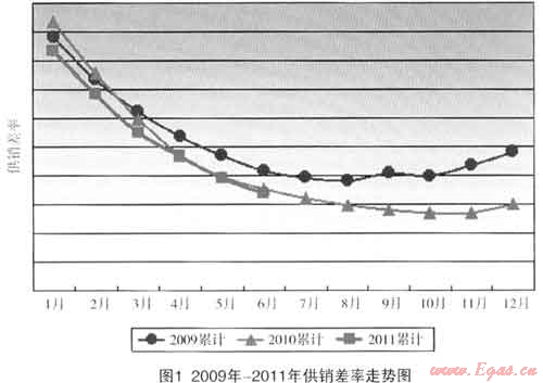 表1 2009年~2011年1月~6月供氣銷售對(duì)比表