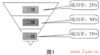 具體而言,創(chuàng)造機(jī)會(huì)、尋找客戶首先要對(duì)整個(gè)經(jīng)營區(qū)域內(nèi),特別是企業(yè)燃?xì)夤芫W(wǎng)已經(jīng)到達(dá)或者近期將要到達(dá)的區(qū)域內(nèi)的各類工業(yè)企業(yè)、事業(yè)單位、賓館、飯店、寫字樓等企事業(yè)單位的能源消耗情況進(jìn)行摸底調(diào)研,或通過各類政府部門,或通過各類行業(yè)協(xié)會(huì),或通過直接登門拜訪,了解這些企業(yè)使用的是哪些能源,不同能源每年的能耗量各是多少,是否有季節(jié)性變化,各類能源的使用成本等基本信息,特別需要關(guān)注的是工業(yè)企業(yè)的各類能源具體是如何使用的,即在生產(chǎn)的哪些環(huán)節(jié)需要使用到什么能源,這些能源消耗后起到的作用是什么,這對(duì)于燃?xì)馄髽I(yè)制定相應(yīng)的市場(chǎng)營銷戰(zhàn)略具有非常重要的指導(dǎo)意義。其次是對(duì)調(diào)研所得的各項(xiàng)數(shù)據(jù)進(jìn)行分析,找出各類大大小小的潛在客戶,利用市場(chǎng)營銷的“漏斗原理”將各類潛在客戶進(jìn)行分類,確定不同等級(jí)的目標(biāo)客戶,一般可分為3個(gè)等級(jí),如圖1所示:
