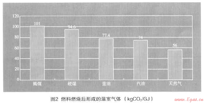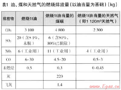 ② 表2中,日本介紹了各種燃料考慮燃料效率后的排放量。美國資料也認(rèn)為天然氣比其他燃料可少排放45%的C02,如采用高效燃燒技術(shù)甚至可能減少70%的C02。但效率應(yīng)采取不同使用設(shè)備的平均綜合效率,這又是一個(gè)重要的研究課題。