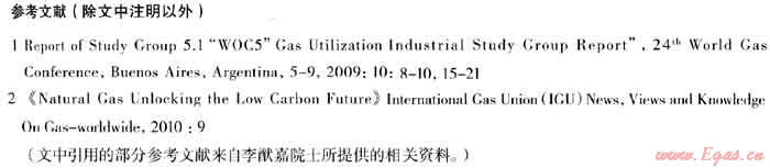(5) 本文所引用的資料均是本世紀(jì)以來值得研究的數(shù)據(jù),從中可看出世界各國對(duì)本世紀(jì)能源構(gòu)成的共同發(fā)展方向。在化石燃料中,由于天然氣的碳/氫比較小,是唯一能滿足節(jié)能、減排要求的燃料,常稱為環(huán)境友好燃料。在世界各國的能源構(gòu)成中,我國是所占比重最低的國家之一,改革開放以來的變化也很小。增加1000億m3的天然氣,相當(dāng)于1.2億t的標(biāo)準(zhǔn)煤,按表2可算出燃料效率提高后的節(jié)能量和C02減排量。當(dāng)今世界年消耗天然氣約2.48億m3,相當(dāng)近29億t標(biāo)煤,在世界能源、減排中有舉足輕重的作用,到2030年估計(jì)全球天然氣消費(fèi)料將達(dá)4.5億m3-5億m3。國際研究表明,加上可再生能源,新能源和其它減排措施后,全球C02的濃度可能降低到1990年水平的要求。本世界以來天然氣已形成了較大的國際市場,發(fā)展天然氣已成為各國應(yīng)對(duì)氣候變暖的首選方案。我國在國家“十二五”規(guī)劃綱要中已有反映。