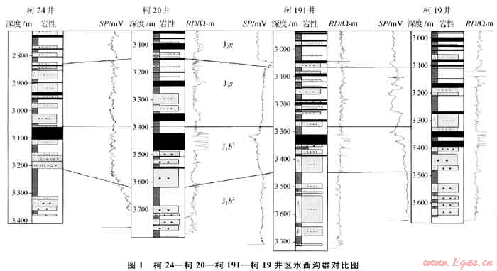 該區(qū)儲層分布穩(wěn)定,厚度大,物性致密,常規(guī)氣藏形成條件欠佳,但能形成致密砂巖氣藏。下侏羅統(tǒng)為含煤的碎屑巖沉積,泥巖以深灰色為主,發(fā)育煤層,為潮濕環(huán)境下的沼澤-湖泛沉積。“先成型”深盆氣藏要求源藏伴生、源儲一體,距離越近越好,直接接觸或互層為最佳,天然氣為“有根”狀態(tài)[2]。水西溝群縱向上砂泥巖與煤層互層呈“三明治”結(jié)構(gòu),地層厚度介于285~892m,砂地比介于30%~60%,單層厚度一般為5~30m,砂巖類型有粉砂巖、細(xì)砂巖、含礫砂巖、中砂巖和粗砂巖,屬辮狀河三角洲沉積,儲層平面分布穩(wěn)定(圖1)。