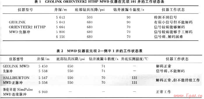 2) 川t東北工區(qū)的實踐表明:普通的HALLIBURTON MWD儀器的工作環(huán)境溫度不宜超過130℃;GEOLINK ORIENTEER2 HTHP儀器可適應(yīng)更高的溫度和壓力,但必須要求有足夠的底部鉆具壓降,當其應(yīng)用于井深超過6000m的井時,底部鉆具壓降應(yīng)在800psi以上且鉆井液漏斗黏度不宜大于70s。