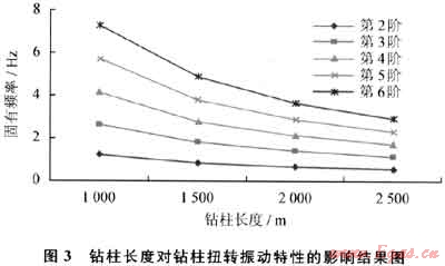3.1.1鉆柱長(zhǎng)度對(duì)扭轉(zhuǎn)振動(dòng)的影響