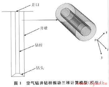 根據(jù)Wolf S.F.等人的研究成果[2~4],可以推斷鉆柱斷裂主要是由鉆柱振動(dòng)引起的交變應(yīng)力所造成的,屬于應(yīng)力疲勞損壞??諝忏@井與常規(guī)鉆井液鉆井不同的地方主要在于所采用的鉆井液流體不同,因此對(duì)鉆柱振動(dòng)特性有了較大的影響。針對(duì)空氣鉆井條件下的鉆柱振動(dòng)問(wèn)題,建立了有限元模型,重點(diǎn)考察了空氣鉆井中鉆柱長(zhǎng)度、鉆井液阻尼等對(duì)鉆柱振動(dòng)特性的影響,以及底部鉆具受到周期性擾動(dòng)時(shí),鉆柱產(chǎn)生的橫向位移響應(yīng)情況。