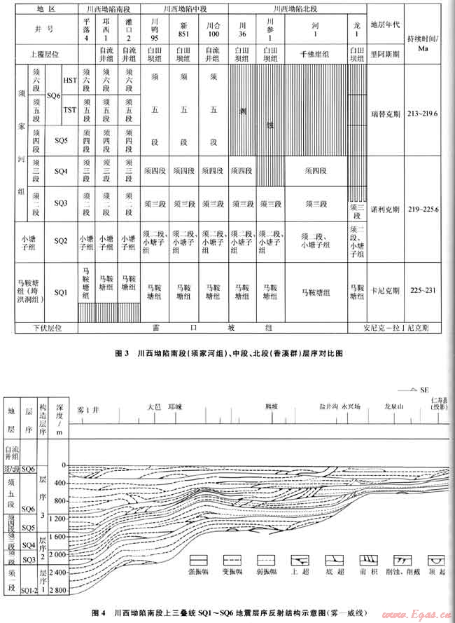 筆者應(yīng)用層序地層觀點,采用地震、鉆井、測井、井震結(jié)合及地層、古生物、年代地層資料再次闡述了上三疊統(tǒng)層序地層劃分的新方案[5]。
