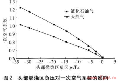 2 燃燒區(qū)負(fù)壓對(duì)大氣式燃燒器的影響