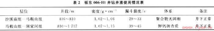 4) 鉆井液性能是保持井眼穩(wěn)定,井底清潔的關(guān)鍵因素。要根據(jù)井下情況及時調(diào)整鉆井液性能,合理控制鉆井液密度,維護井壁穩(wěn)定,保證井下安全,保證工具安全。