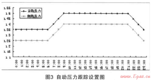 該功能可以預輸入最多4條壓力曲線,在不同的季節(jié)或者時間段選擇不同的壓力自動跟蹤曲線。