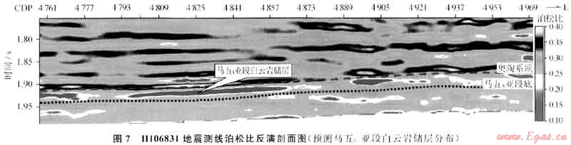 首先,從區(qū)域上的巖性相變看,從盆地東部-靖邊靖西地區(qū)-古隆起地區(qū),馬五5巖性由盆地東部的石灰?guī)r到靖西地區(qū)完全相變?yōu)榘自茙r,并環(huán)繞古隆起形成一個區(qū)域性的巖性相變界面,即靖邊東側地區(qū)基本全為致密的石灰?guī)r地層,而靖西地區(qū)皆為白云巖地層。