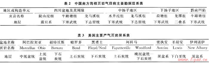 美國(guó)目前的產(chǎn)氣頁(yè)巖主要集中在泥盆系和密西西比系(下石炭統(tǒng))等層系,以晚古生代頁(yè)巖為主(表3)。