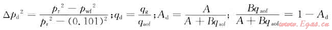 由一般二項式pr2-pwf2=Aqg+Bqg2和qaof表達式pr2-0.1012=Aqaof+Bqaof2推導出對比參數(shù)二項式,即△pd2=Aqd+(1-Ad)qd2,一點法二項式絕對無阻流量表達式為: