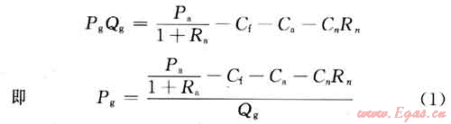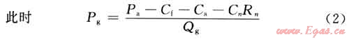 從另一方面看,該單位產品所用天然氣產生的使用經濟價值應為單位天然氣用于該用途的使用經濟價值與生產該單位產品所消耗天然氣量的乘積(PgQg),它們的數值應相等: