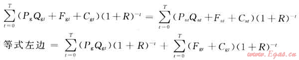 根據“替代價值法”的原理,在達到相同使用效果前提下,在天然氣使用裝置經濟壽命期內付出的累計投入現值應等于使用天然氣等價替代物的裝置經濟壽命期內付出的累計投入現值,即: