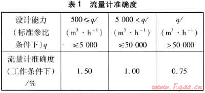 ② 流量計(jì)準(zhǔn)確度應(yīng)符合表1的規(guī)定。同時(shí)必須注意,過(guò)分準(zhǔn)確度的要求會(huì)增加不合理的費(fèi)用。