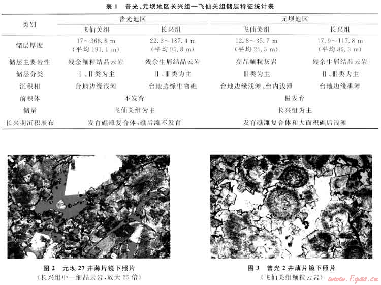 總起來看,普光地區(qū)儲(chǔ)層主要發(fā)育飛仙關(guān)組,具有厚度大、物性好的特點(diǎn);元壩地區(qū)儲(chǔ)層主要發(fā)育長(zhǎng)興組,具有面積大、礁后灘發(fā)育的特點(diǎn)。
