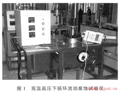 實驗儀器為西南石油大學(xué)“油氣藏地質(zhì)及開發(fā)工程”國家重點實驗室自主設(shè)計建造的高溫高壓下循環(huán)流動腐蝕試驗儀(圖1),上述評價是在該儀器上完成的。儀器最大氣密封工作壓力70MPa、最高工作溫度180℃、容積8L、整體C276合金鍛造、藍(lán)寶石視窗觀察流動狀況。兩個功能流道可模擬研究流速、氣流持水率、元素硫是否附著于試片等流動因素的腐蝕,本實驗通過高溫高壓釜視窗觀察不同流速條件下,模擬在含有地層積水和攜水條件下的腐蝕情況。