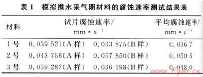 在溫度為120℃,壓力為60MPa,含地層攜水條件下的各個試件的腐蝕情況,其統(tǒng)計結(jié)果見表1。