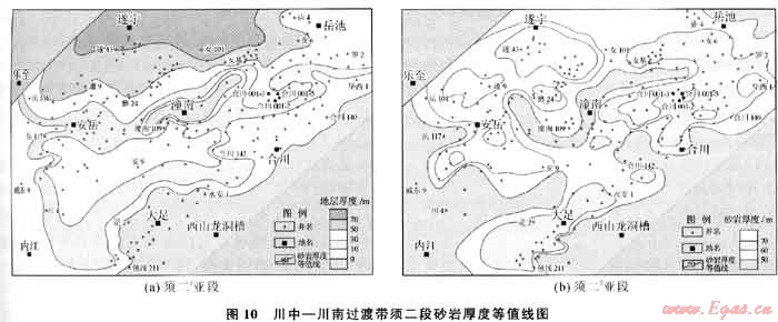 5) 各段沉積期主要的湖岸線位置有差異??傮w上,川中北部地區(qū)須二段沉積期湖岸線大體位于龍崗-元壩一線,東部及東南部以碳酸鹽巖侵蝕凸起為界;須四段(須六段)的湖盆北部岸線大體位于龍崗-八角場一線,東部東南部湖岸線已達(dá)到現(xiàn)今重慶綦江-重慶璧山-四川廣安一帶;須六段沉積期東湖岸線更向東、向南擴(kuò)展。