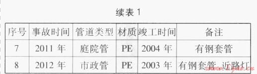 深圳地區(qū)2000年開始將PE管道應(yīng)用于埋地燃?xì)庵袎汗艿?。從運(yùn)行情況來看,PE管道確實(shí)較好地解決了傳統(tǒng)金屬管道易腐蝕穿孔和接頭易泄漏等運(yùn)行維護(hù)的難題,顯著提高了燃?xì)廨斔偷目煽啃?,大大降低了管道的運(yùn)行維護(hù)費(fèi)用。但在近年運(yùn)行過程中,曾出現(xiàn)多起PE燃?xì)夤艿朗馨紫佒g而造成管道破壞泄漏的問題。