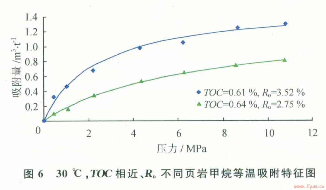 從以上的分析可以知道,TOC與R。共同影響著頁巖的吸附能力。