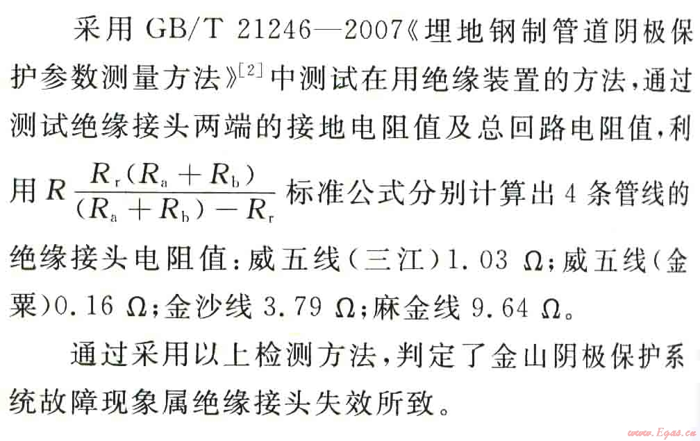 通過采用以上檢測方法,判定了金山陰極保護(hù)系統(tǒng)故障現(xiàn)象屬絕緣接頭失效所致。