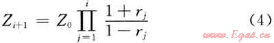 式中Z0為初始層波阻抗;Zi+1為第i+1層的波阻抗。