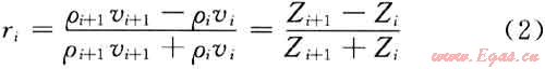 式中ri為界面反射系數(shù);ρi+1、ρi分別為界面兩側介質(zhì)的密度;vi+1、vi分別為界面兩側介質(zhì)的速度;Zi+1、Zi分別為界面兩側介質(zhì)的波阻抗。