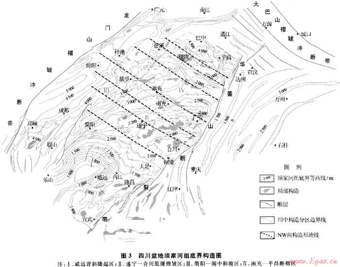 勘探已證實四川盆地須家河組天然氣資源豐富,以致密砂巖氣藏為主,含氣面積大、儲量規(guī)模大,同時存在含水飽和度偏高、開發(fā)動用難度大等難題。加強氣水分布主控因素和天然氣富集“甜點”區(qū)塊預(yù)測是當前勘探開發(fā)面臨的重要課題。筆者認為加強須家河組構(gòu)造研究是解決上述難題的重要途徑。