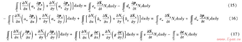 式(15)~(17)為二維氣水滲流及氣體擴(kuò)散有限單元法計算的基本方程。