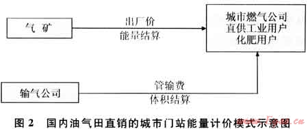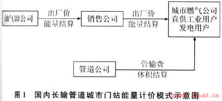 由于目前天然氣銷售是按照出廠價和管輸費(fèi)分別結(jié)算的,實施能量計量后,按圖1、2的模式確定城市門站價格。