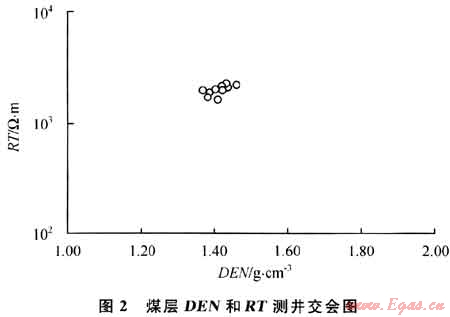在相同程度的煤化作用下,電阻率一般反映煤巖成分和煤質(zhì),電阻率越高,表明煤層灰分越低,煤質(zhì)越好,絲炭含量和煤層受氧化是煤層電阻率降低的主要因素,低電阻往往也就直接反映了相對低的煤層含氣量;聲波時(shí)差值顯示了煤層的壓實(shí)程度和孔隙;補(bǔ)償中子則表示煤巖的含氫指數(shù);補(bǔ)償密度則指示煤巖的變質(zhì)程度和含氣量。從測井交會圖(圖2)中可以看出,該煤層的測井響應(yīng)反映出了絲炭含量低、灰分中等、弱含水的特征。