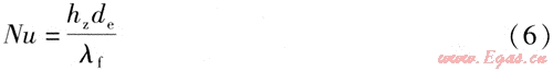 式中Nu——努塞爾數(shù),反映對(duì)流換熱過(guò)程的強(qiáng)度