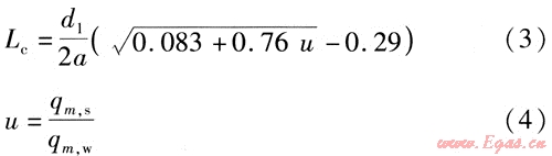 擴(kuò)散室的擴(kuò)展角一般取6°~15°,擴(kuò)散室長度Le的計(jì)算式為: