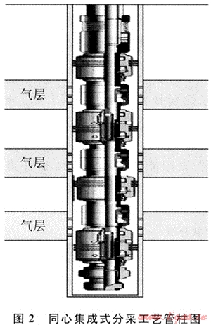1) 同心集成式分層采氣工藝技術(shù)可行,但存在著現(xiàn)場(chǎng)打撈井下配產(chǎn)器時(shí)上提負(fù)荷大,存在鋼絲容易被拉斷的隱患。