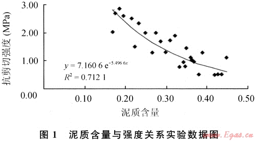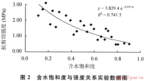 實驗樣品的抗剪切強度與含水飽和度(泥質含量30%)回歸關系式(圖2)為: